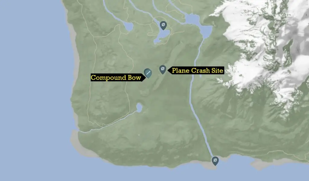 To discover the Compound Bow in Sons of the Forest, you must first obtain a Shovel, as it is concealed underground and you must dig out the entrance to the subterranean bunker. The location of Compound Bow is on the southern part of the island, slightly west of the airplane crash site by the Maintenance Area B dig site. I have marked the location on the map.