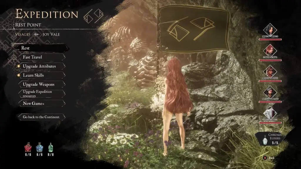Keep moving forward, and soon you’ll reach a small alcove where the Confident Fighter Picto is under a tree.