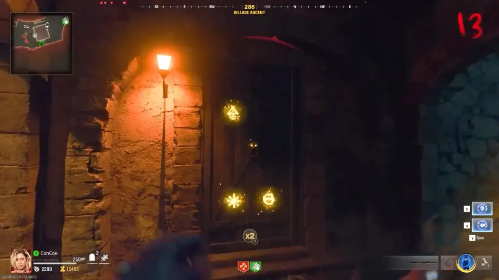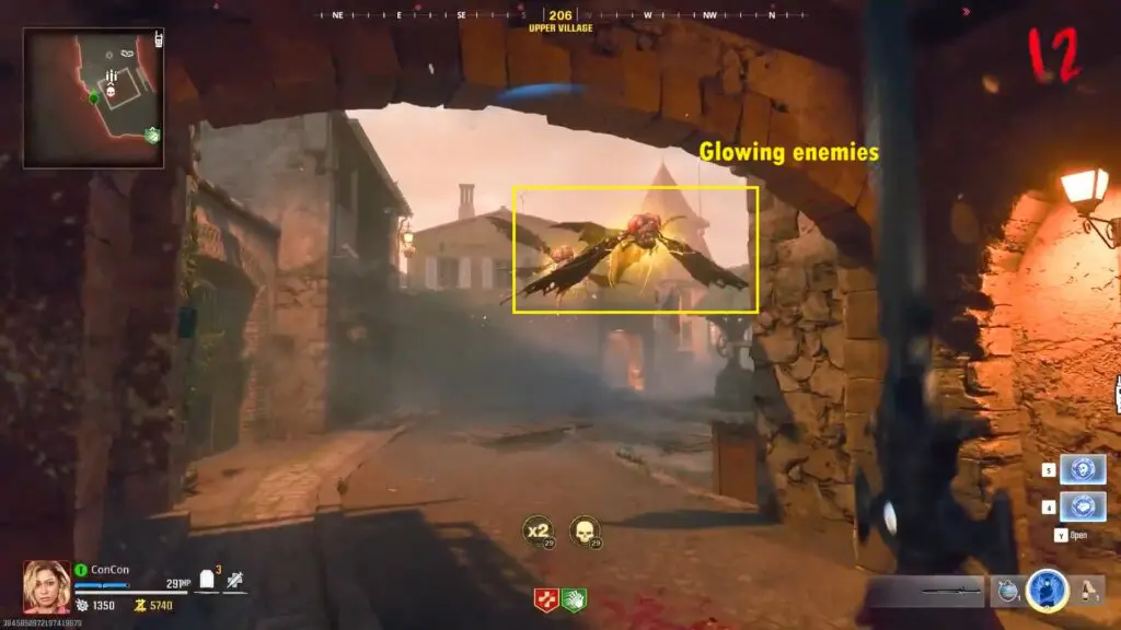 Next, head back to the main town and find the door marked on the map. You will see flying enemies with a yellow glow start spawning near you.