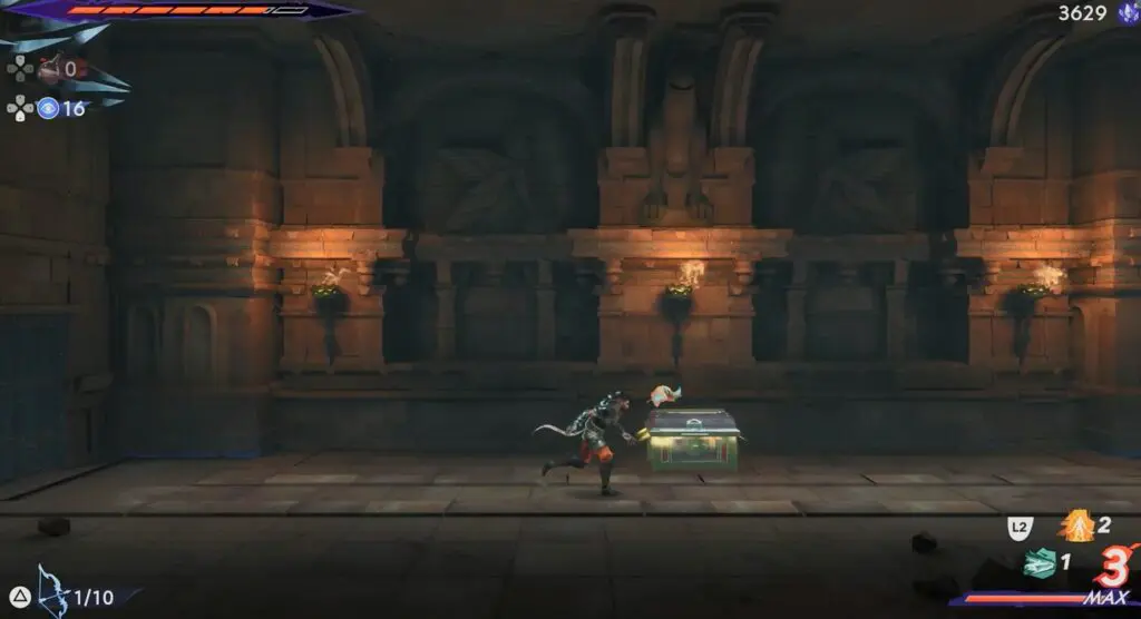 Proceed to the designated location to discover a chest. Upon interacting with the chest, the walls will start shifting to trigger the trap. The trap sequence includes a series of blades traversing from one side of the room to the other, and you must avoid hitting it.