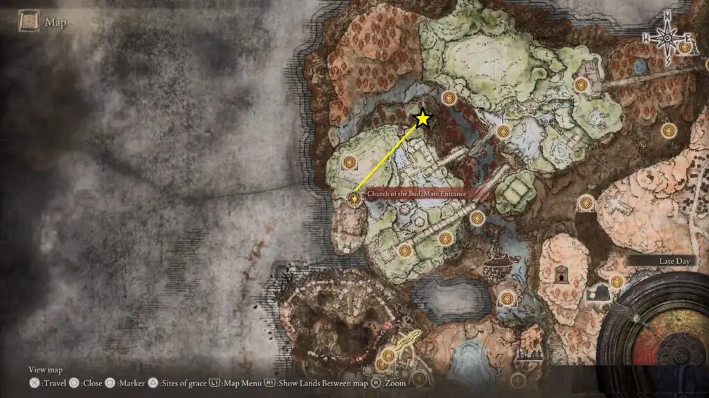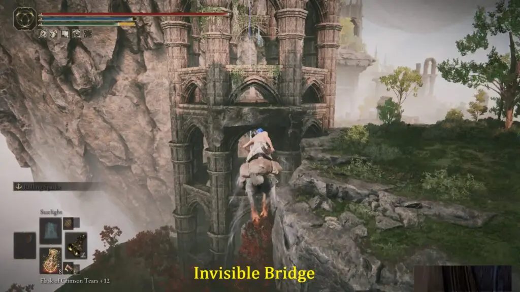Starting from the Church of the Bud Site of Grace, head north and enter the cave. Descend the first elevator in the Red Room and proceed northwest to reach the balcony. Cross the invisible bridge leading across to the other side to reach the tower.