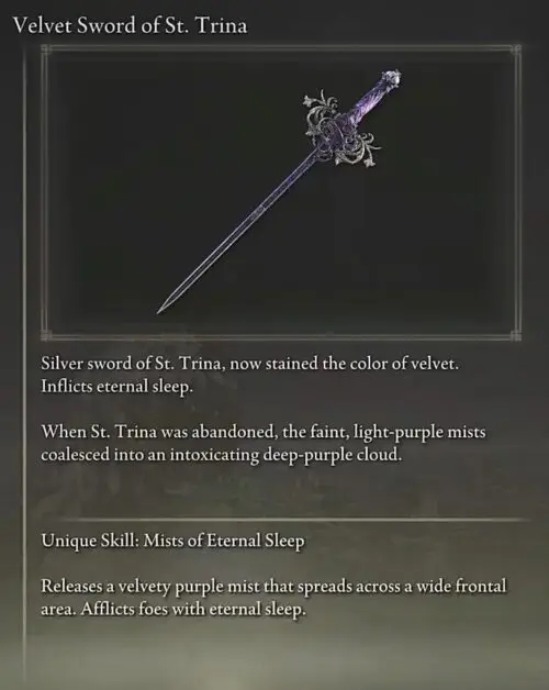This guide shows where to find the Velvet Sword of St Trina in Elden Ring DLC, Shadow of the Erdtree, which released on 21st June 2023. Click here to St. see Trina’s complete questline.