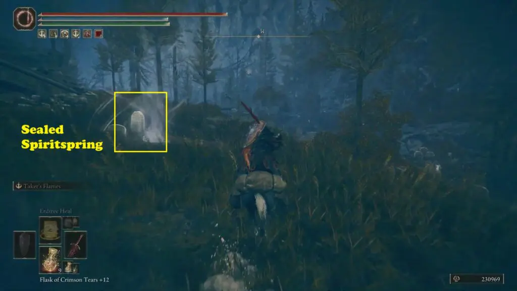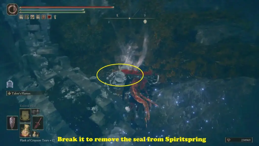 At the bottom of the cliff, there’s a sealed Spiritspring. To open it, go south from there up a ramp next to the cliff and break the seal.