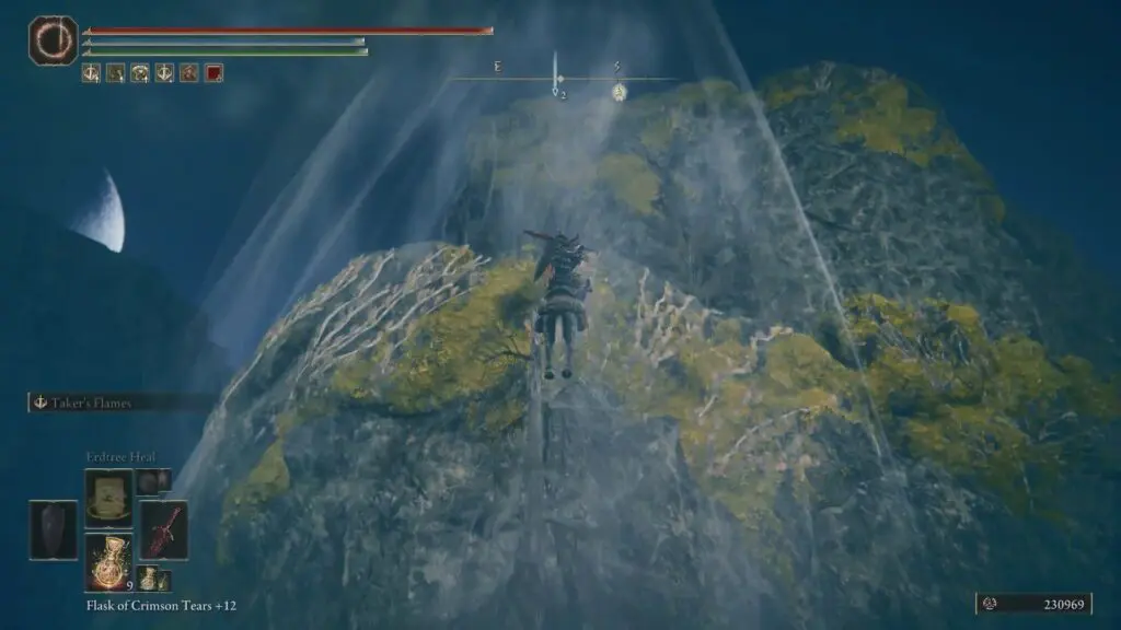 The Nameless Northern Mausoleum is located on top of a cliff. To reach the Nameless Northern Mausoleum, proceed southwest from the Ancient Ruins Base Site of Grace to reach the base of the cliff, as shown in the map below.