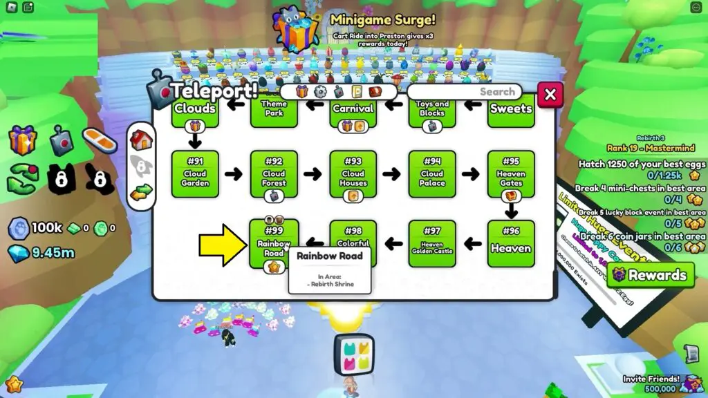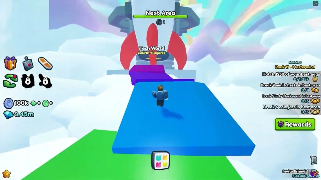To reach Tech World in Pet Simulator 99, players must first need to enter Area 99 (Rainbow Road) and access the Rebirth 4 statue.