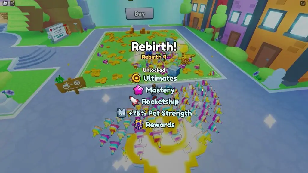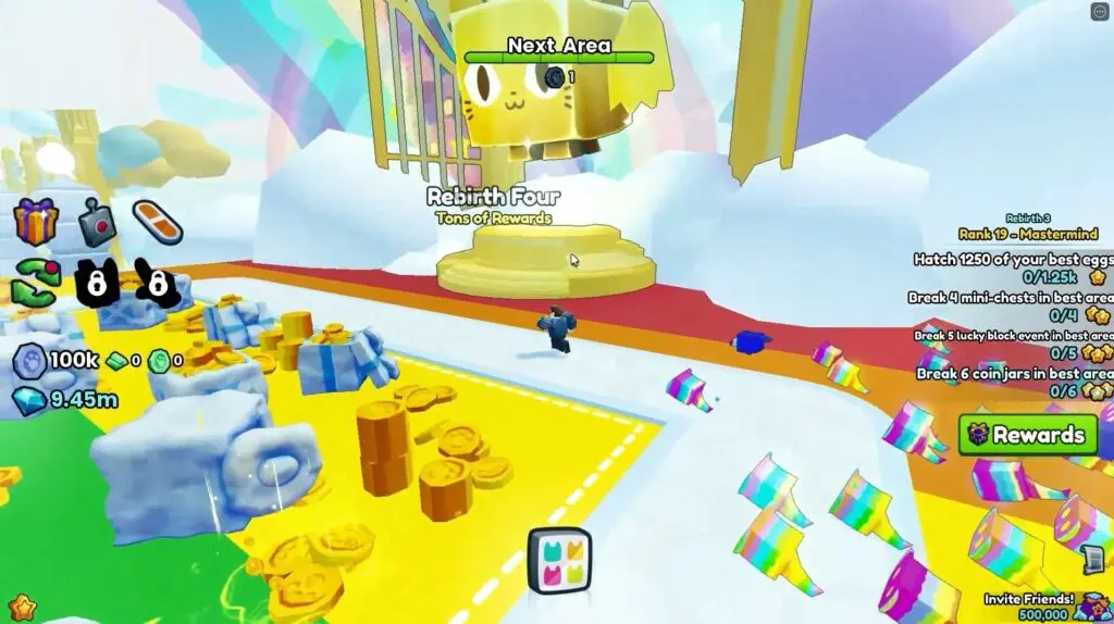 But, as the player interacts with Rebirth 4, all Area progress and coins will get reset and they need to complete Areas 1 through 99 again. Players will, however, earn 75% stronger pets and will be able to unlock new powerful abilities.