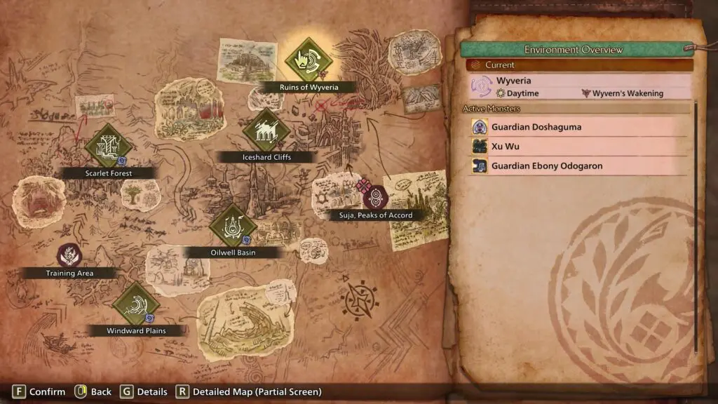 Tough Guardian Bones can only be found in the Ruins of Wyveria. These rare items can be obtained by harvesting Bonepiles or defeating monsters in the area. To locate a Bonepile, look for large skeletons on the ground. Once you find one, simply approach it and interact with it to collect its resources.