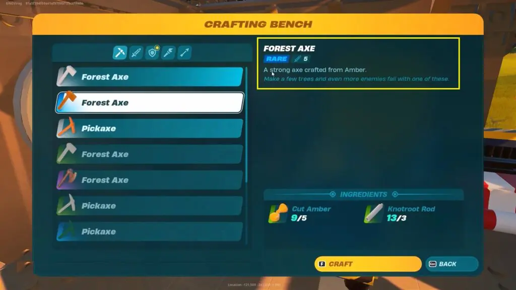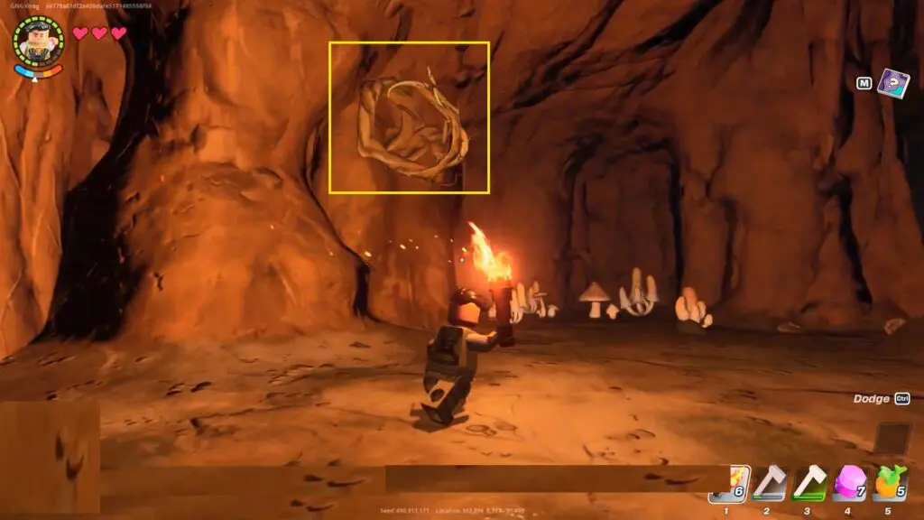 6) Use Uncommon Axe to collect Knotroot inside of the cave