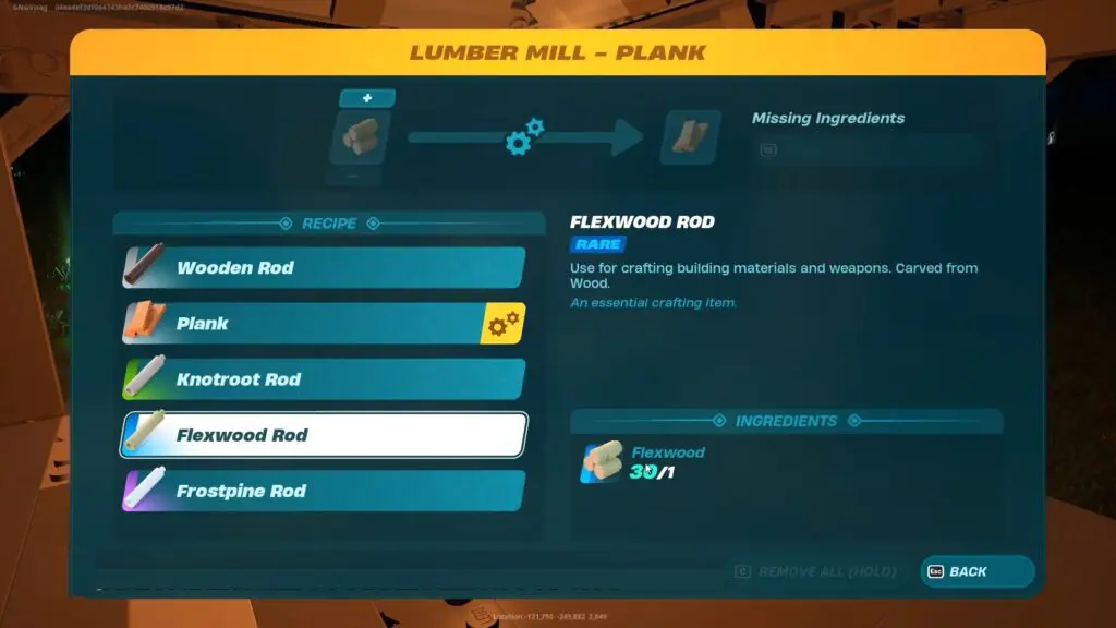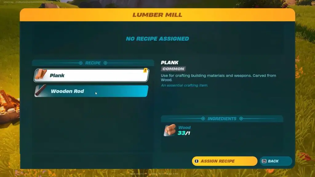 Once you’ve built a lumber mill, interact with it and choose “plank” from the recipes list. Use the up button on the D-pad to decide how many pieces of wood you want to turn into planks; it’s a one-to-one conversion rate. The process of converting wood into a plank takes a few seconds for each piece. When finished, remember to collect your planks by pressing the Y / Triangle button on the console.
