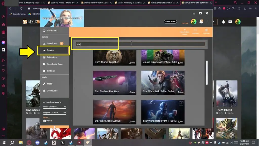 - In Vortex, go to the ‘Games’ section and find Starfield.
