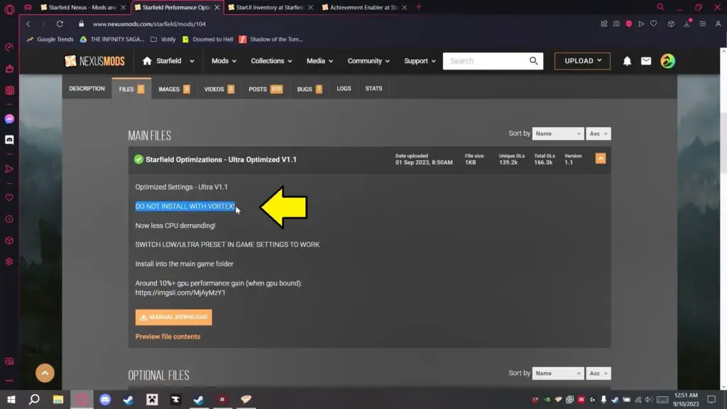 - If the mod’s installation instructions advise against using Vortex, manually drag and drop the downloaded file into the Starfield game directory.