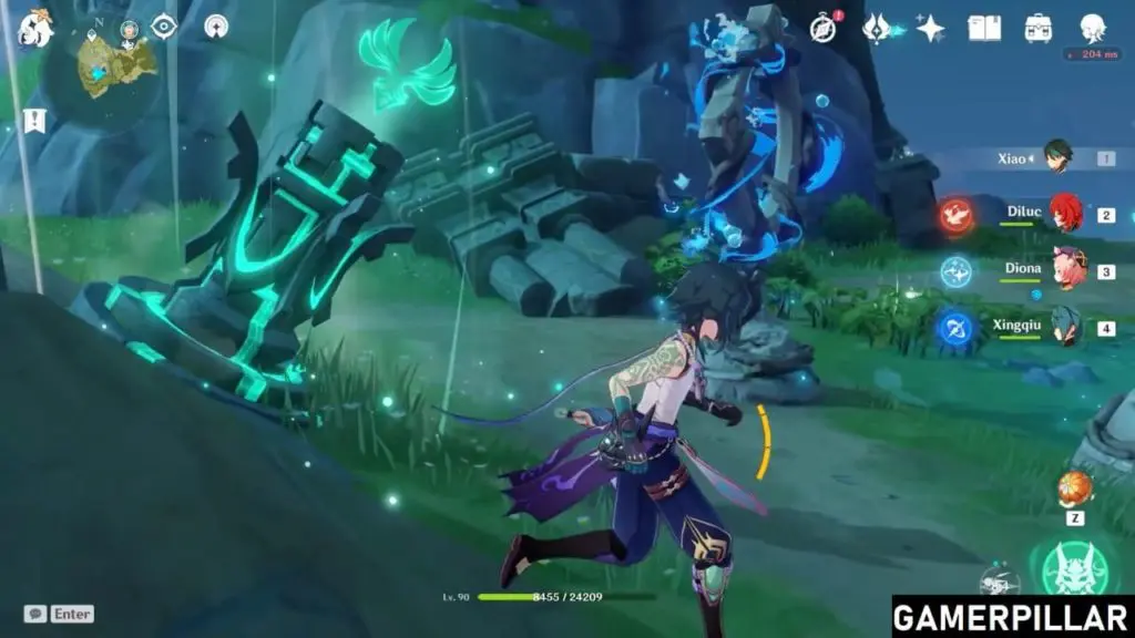 Approach the Ice Elemental Monument to the left. Select a Cryo character and hit it with an ice attack to activate it. On the other side, you’ll find the Anemo Elemental Monument. To light up the Elemental Monument choose an Anemo attack and hit.
