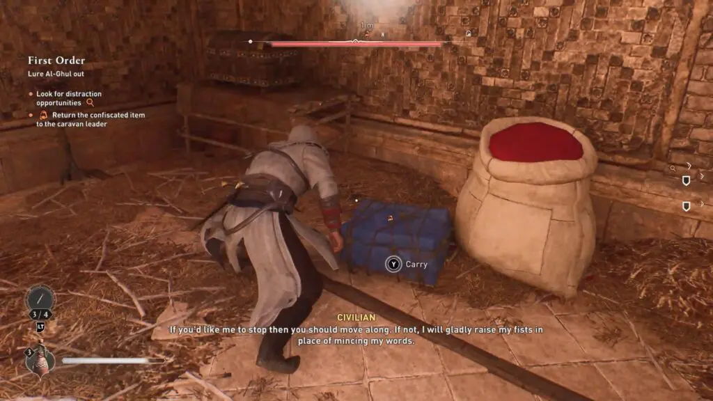 To begin, find a merchant situated near the eastern gate of Caravanserai. When you speak with the merchant, he’ll claim that he’s been forced to wait as his goods are being inspected. Here, they agree to steal the things for the merchant to lure Al Ghul into the Caravanserai.