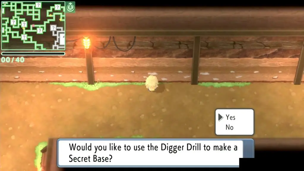 Now go back to the Grand Underground, and use the Digger Drill to make a Secret base at the location of your choice. Walk to any wall, and Press ‘A’ to place the Secret base. Once inside, you can place different statues that will give you a different boost while down in the underground. You can find more statues by digging the walls, the same way you got the treasure before.