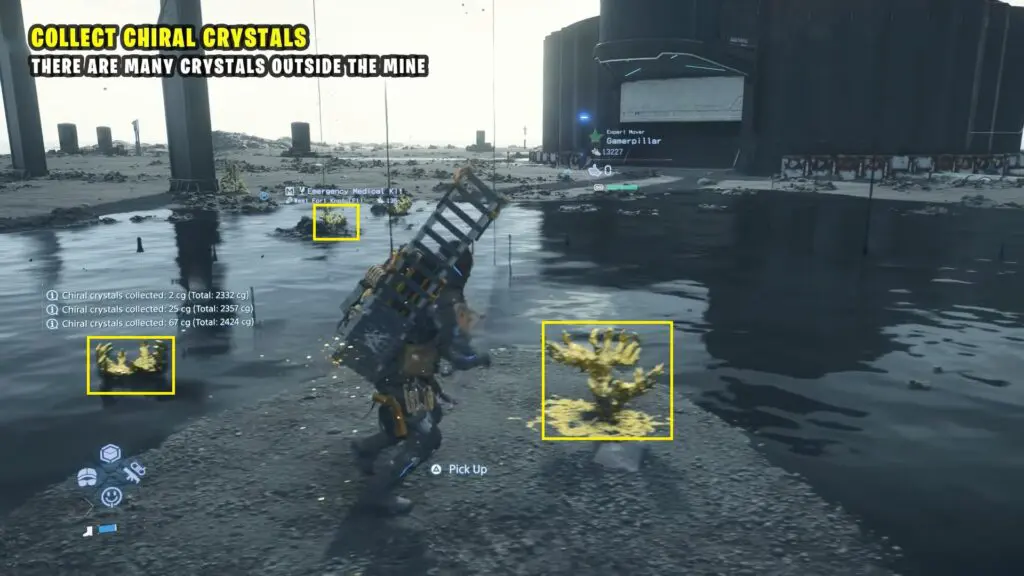 Chiral Crystals are shiny, hand-shaped golden ores coming out of the ground. You’ll find lots of shiny golden crystals near the mine entrance of F1 and in the nearby area. Also, turn on your scanner to see if more Chiral Crystals are hiding in the area. You’ll need to collect about 2,000 of these crystals before you can start mining.