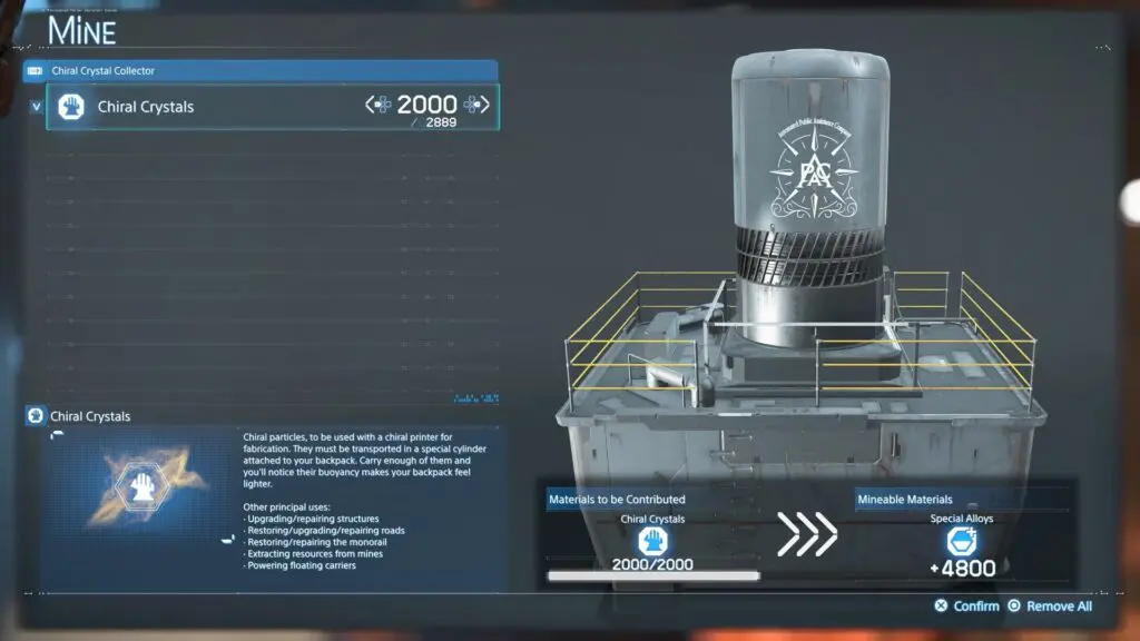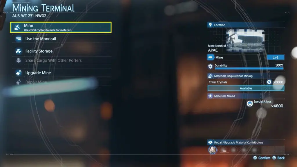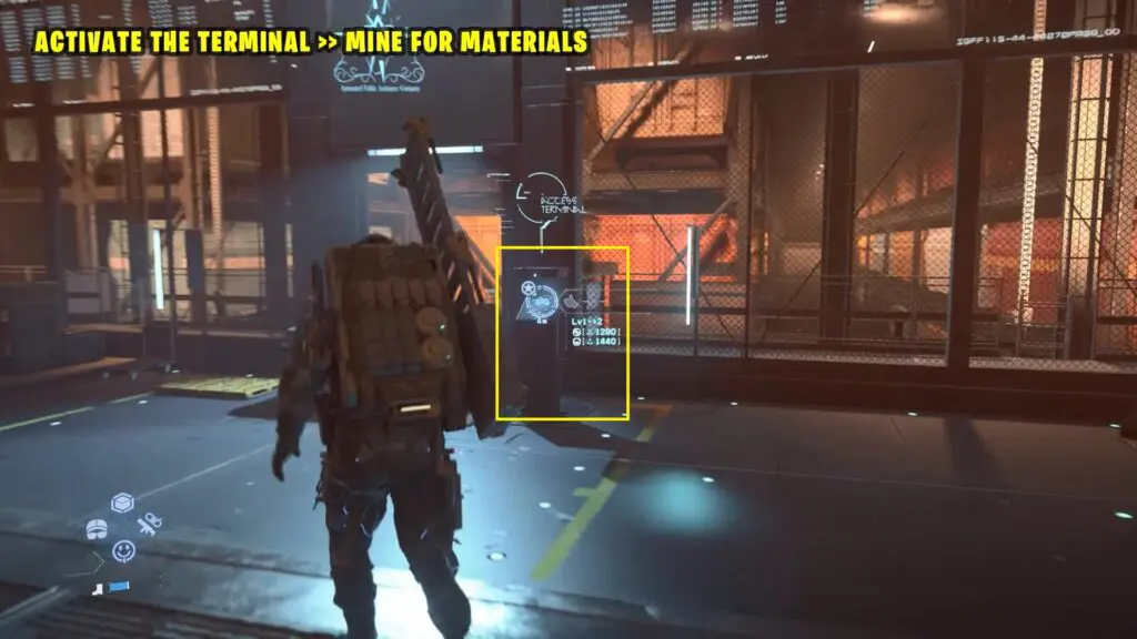 Once you have collected enough Chiral Crystals, go inside the building of the mine F1. Inside, interact with the access terminal and select the option ‘Mine’.