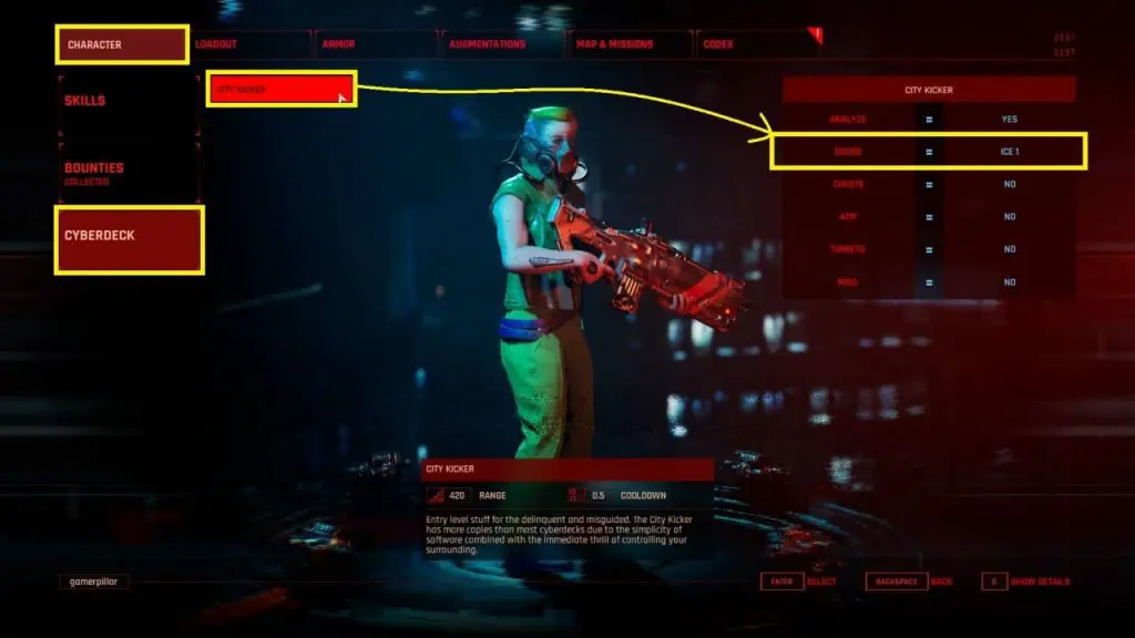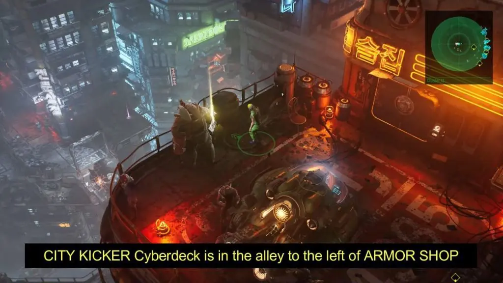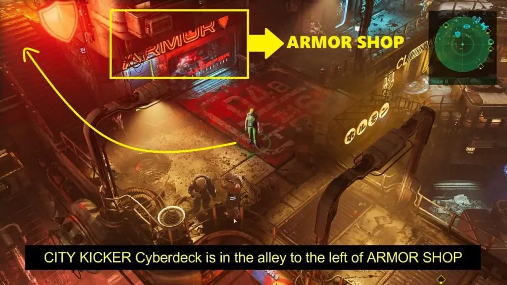 Ice Kicker is the first cyberdeck upgrade that you can obtain in the game, after reaching Cluster 13. This cyberdeck upgrade is located in the northwest corner of Cluster 13 behind the Armor Shop. Take the stairs on the left side of the Armor Shop and reach the balcony at the very end of the alley. You’ll find the Ice Kicker Cyberdeck upgrade there. Your cyberdeck will be automatically upgraded after you pick this upgrade.