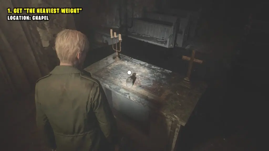 Go to the Chapel, where players will find ‘The Heaviest Weight’ on the Altar.