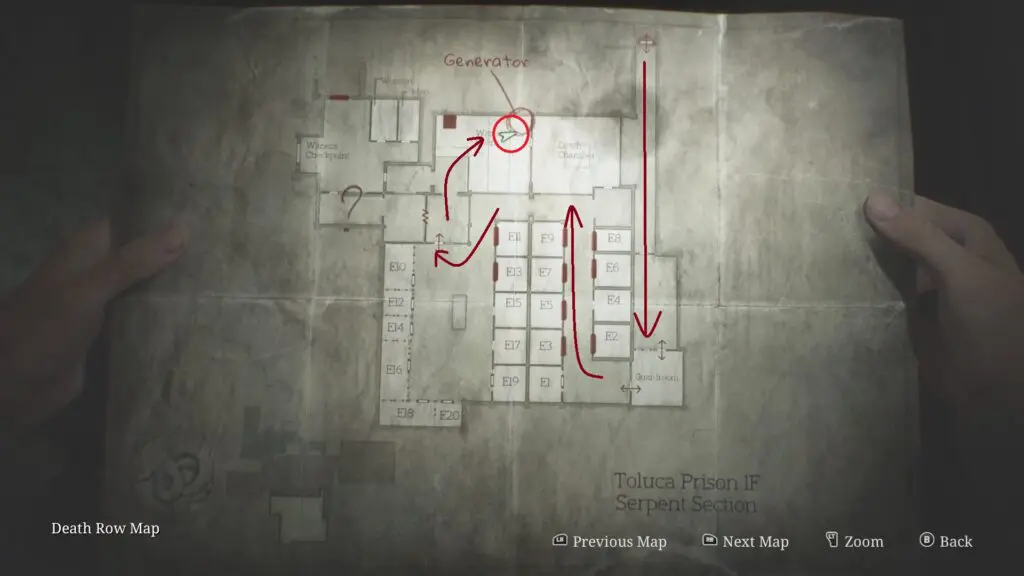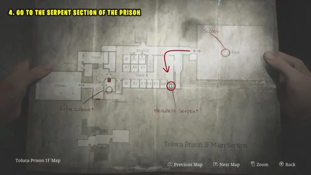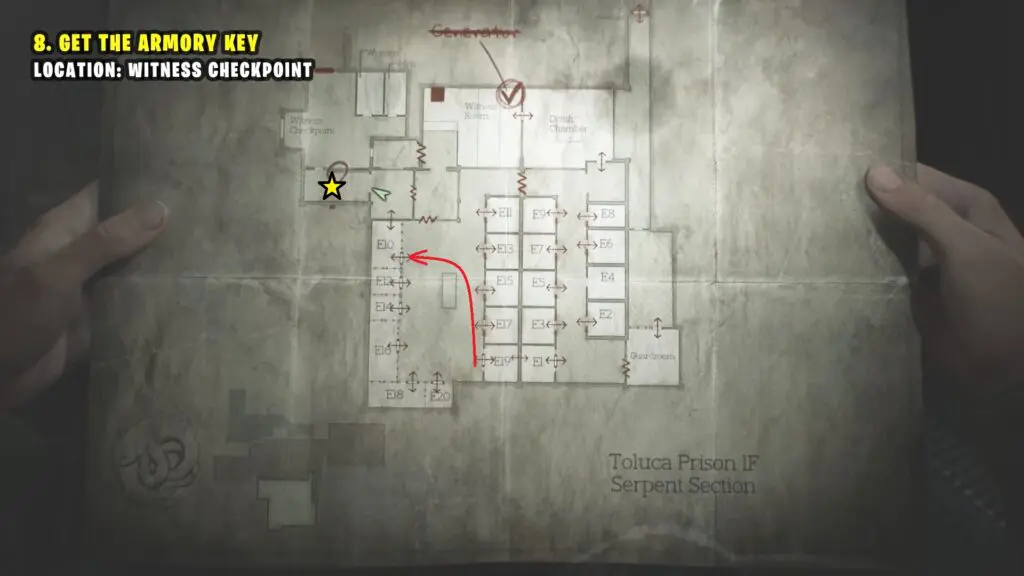 Inside the Serpent section, follow the long corridor to reach the Guardroom. Then, exit the Guardroom and follow the corridor with locked cells to enter the Witness Room.