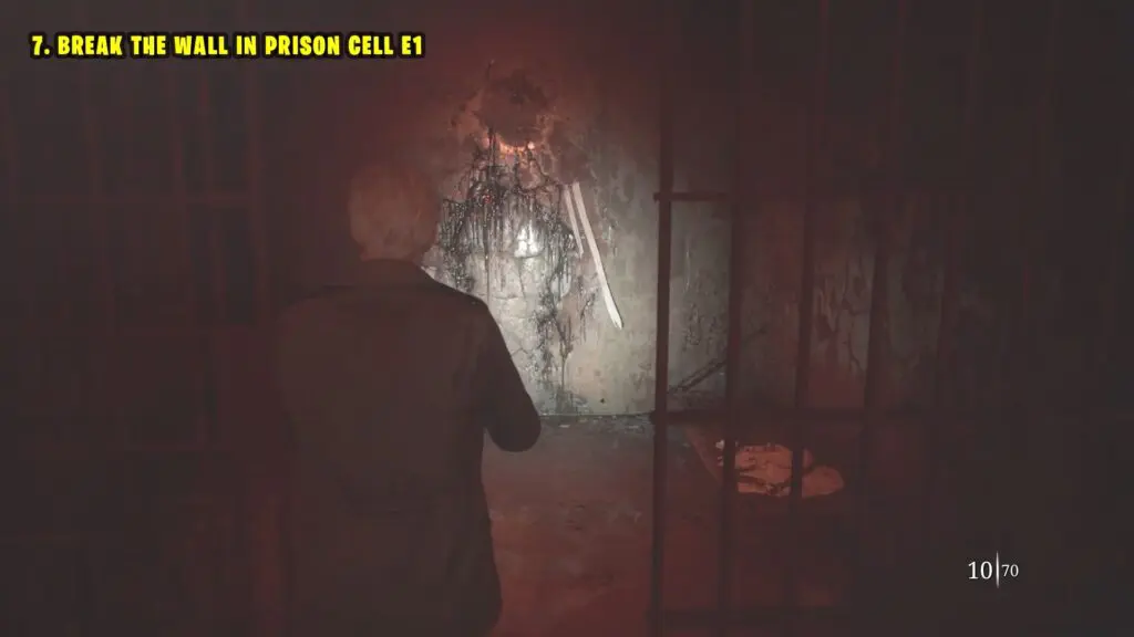 After crossing to the other side, head towards Cell E10 and slip through the crack in the wall into a room containing the Armory Key.