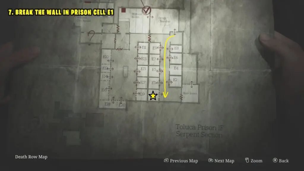 Exit from the other side of the Death Chamber and go to the Cell E1. Break the wall inside Cell E1 and go to the other side.