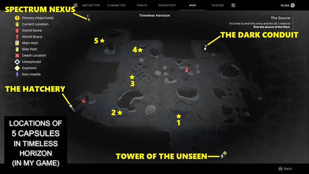 Now, your next step is to explore Timeless Horizon and locate the other five capsules. One of these capsules contains the Star Shot. Below are the locations of all five capsules marked on the map. These capsules are scattered on the open ground.
