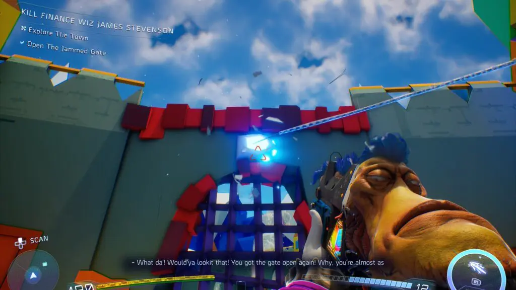 This article will guide the player on how to complete the objective ‘Open the Jammed Gate’ for the quest Kill Finance Wiz James Stevenson in the game High on Life 2.