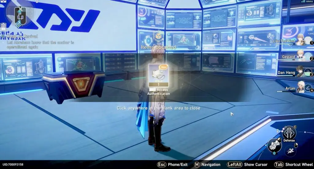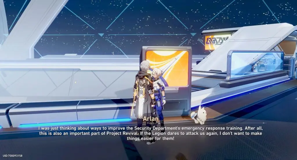 To start the “Road to Revival” side quest in the Herta Space Station, interact with Arlan in the Master Control Zone. Follow the quest until you receive the objective to “activate the extinguished anchor in the target cabin.” Enter the designated cabin and defeat the boss enemy to obtain the first card.