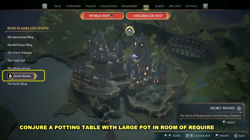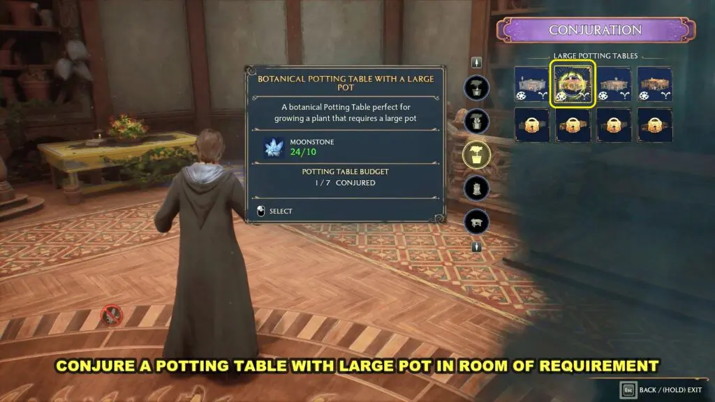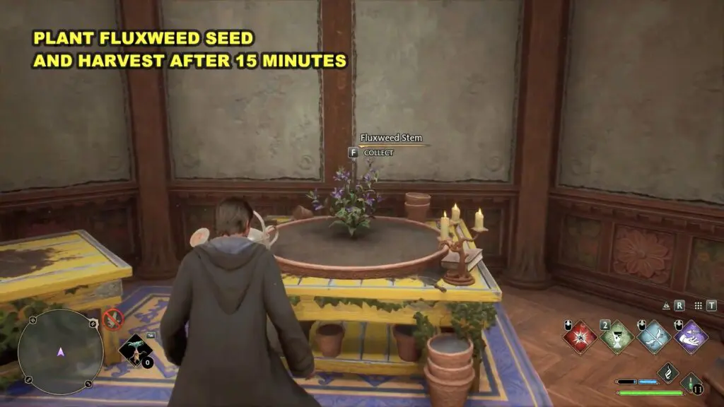 Finally, go to the Secret room > Room of Requirement in Hogwarts, place the Potting Table somewhere in the room, and grow the Fluxweed, it takes 15 real-time minutes to grow the Fluxweed.