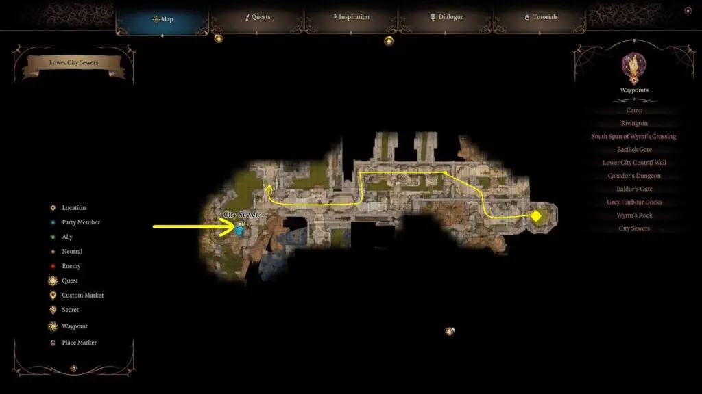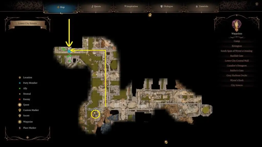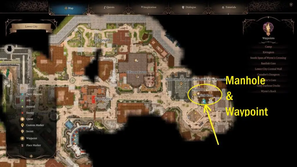 Visit the Basilik Gate Waypoints situated in the eastern part of the Lower City. Access the manholes positioned slightly to the north of the Basilik Gate Waypoints to enter the sewer system.