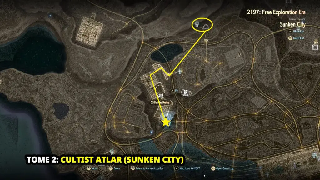 Cultist Altar is found northeast of the Cliffside Ruins in the Sunken City. Use the map for reference to pinpoint the exact location.