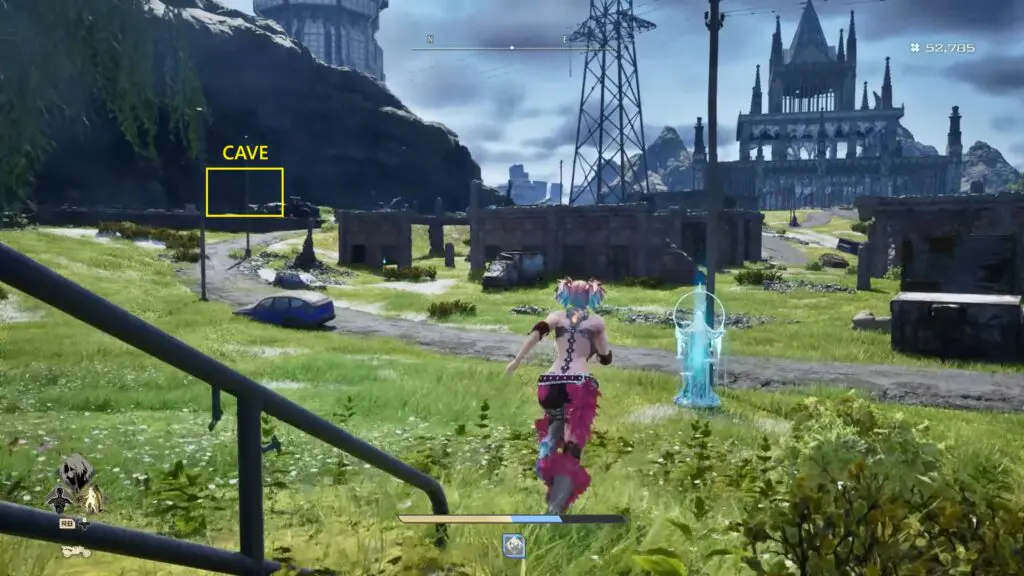 From there, continue moving north until you exit the hotel into an open area. Keep heading north until you reach a cave entrance.