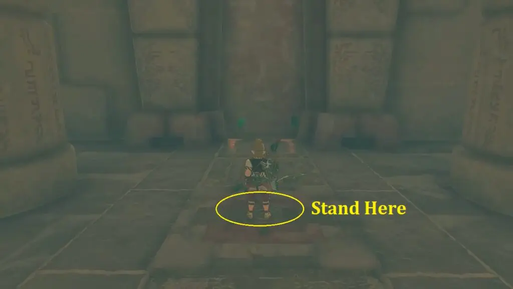Wipe away the sand pile in front of the gate to reveal a pressure plate on the floor. Stand on it to open the temple door.