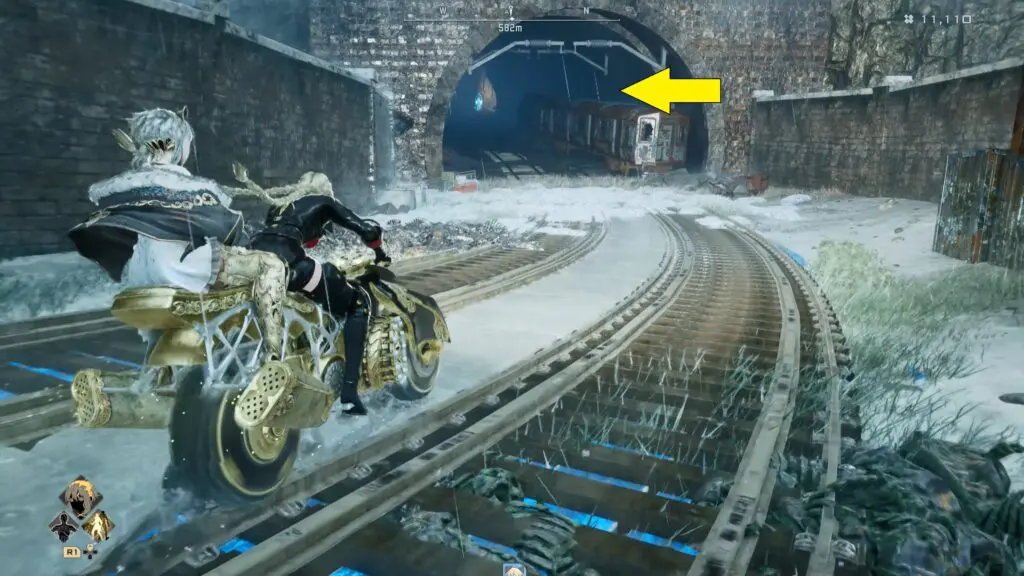 From the Mistle, follow the rail track heading north. Keep moving along the tracks until you reach the entrance to the Collapsed Tunnel.