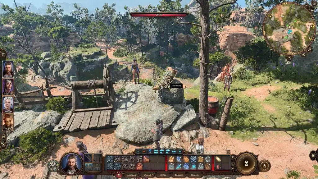 After a long rest, return to the Druid’s Grove. Blow the horn in Druid’s Grove and open the gate to start a battle with the Tieflings.