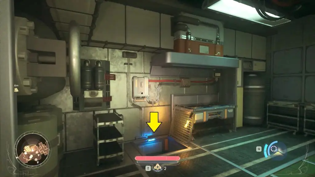 Go upstairs and head to the right of the jammed door to reach the kitchen area. Inside the kitchen, you’ll find an open vent leading down into the floor. Enter the vent, and it will take you into the room that was blocked by the jammed door.
