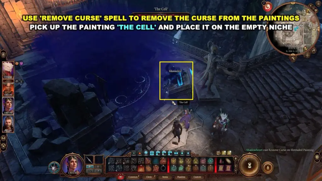 The three paintings depict a story that you must unravel in Baldur’s Gate 3 in order to pass the Chamber of Justice. Pick up the “The Cell” paintings.