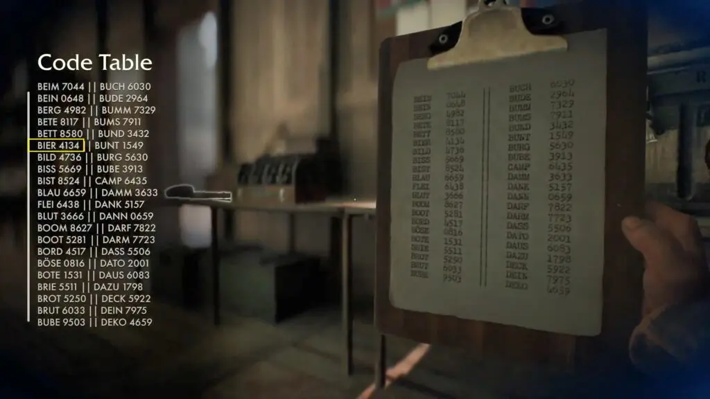 So, the final decoded letters are B-I-E-R and the code is 4134. Use this code on the chest to open it.