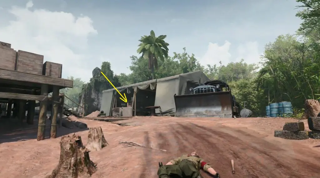 Go to the Nazi camp located on the central island of the map in Wat Mahathat. If you are approaching the camp from the south, go inside the camp on your right side.