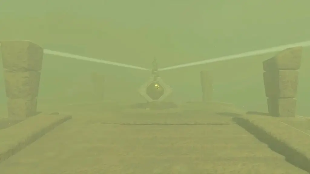 At this point, all three towers are mutually illuminating in a triangular formation and a new altar appears. Interact with the altar to raise the Lightning Temple from the sand.
