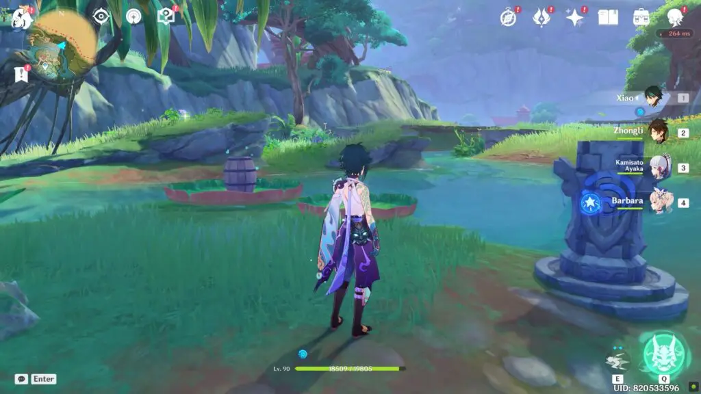 This puzzle is located to the east of Silver Bottle Courtyard. There are two leaf boats that are afloat and have wooden barrels on them, along with four Hydro totems. When you interact with it, a Water Bubble will appear. Next, you have to follow the Water Bubble to activate the monuments.