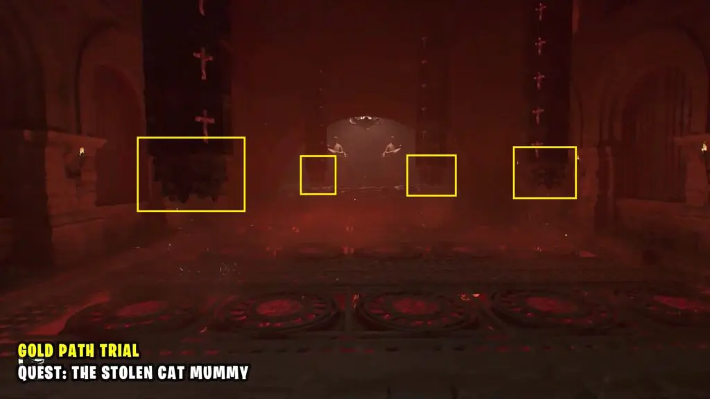 This guide shows how to solve the Gold Path Puzzle for The Stolen Cat Mummy mission in the Indiana Jones and the Great Circle game, which was released on December 9, 2024. When you reach the puzzle location, you will see four hanging pillars as shown in the picture below. You need to move the four pillars and get the fire burning underneath them to solve the puzzle.