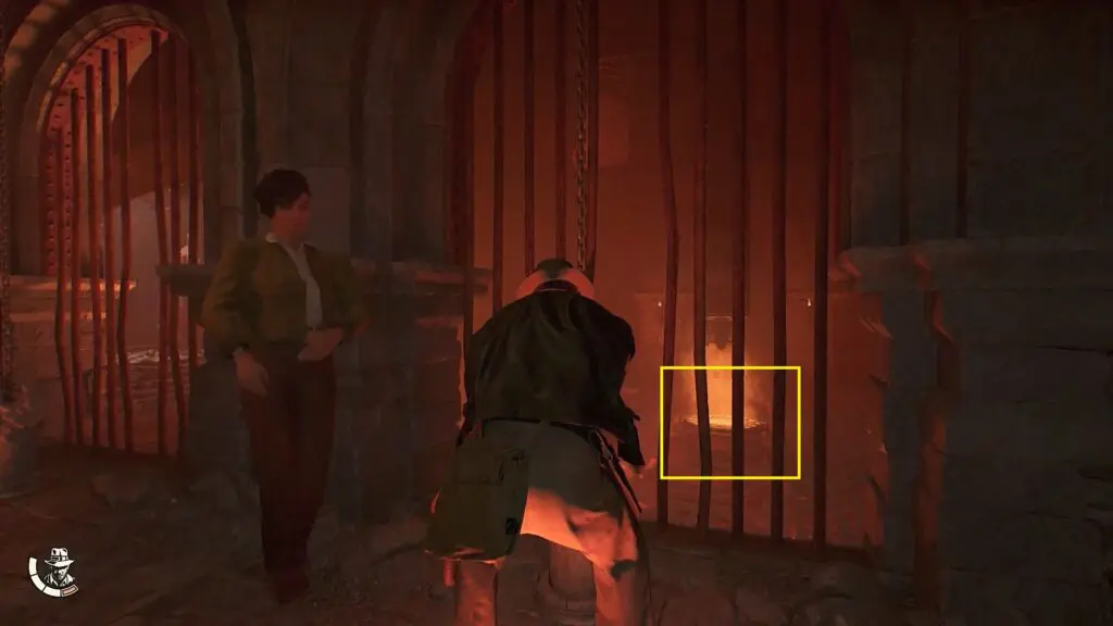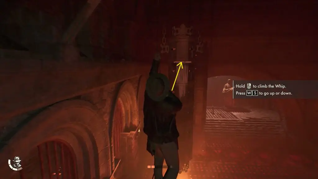 After entering the area, go to the passage on the left side. You will find a chain there. Pull the chain to move the hanging pillar ahead of it. Keep pulling the chain until the fire starts burning underneath the pillar as shown in the picture below. Now leave this chain and go to the next chain in the passage. Pull the chain to get the second fire burning.