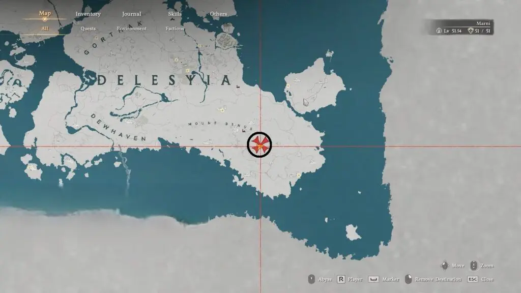 Head to the bottom right corner of Deleysia, as shown in the map below. The puzzle is located near Mount Benus, where you will find a mysterious energy.