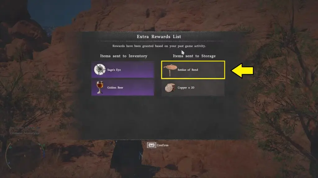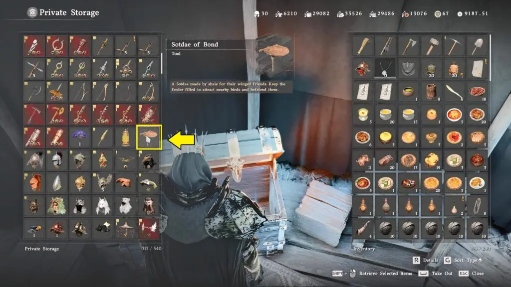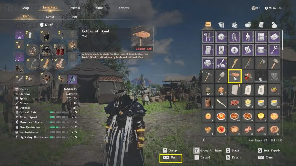When you load into the game after the update, you should receive a Sotdae of Bond sent directly to your storage. Head to your camp at Howling Hill, where the game will give you a short tutorial on the bird taming system.