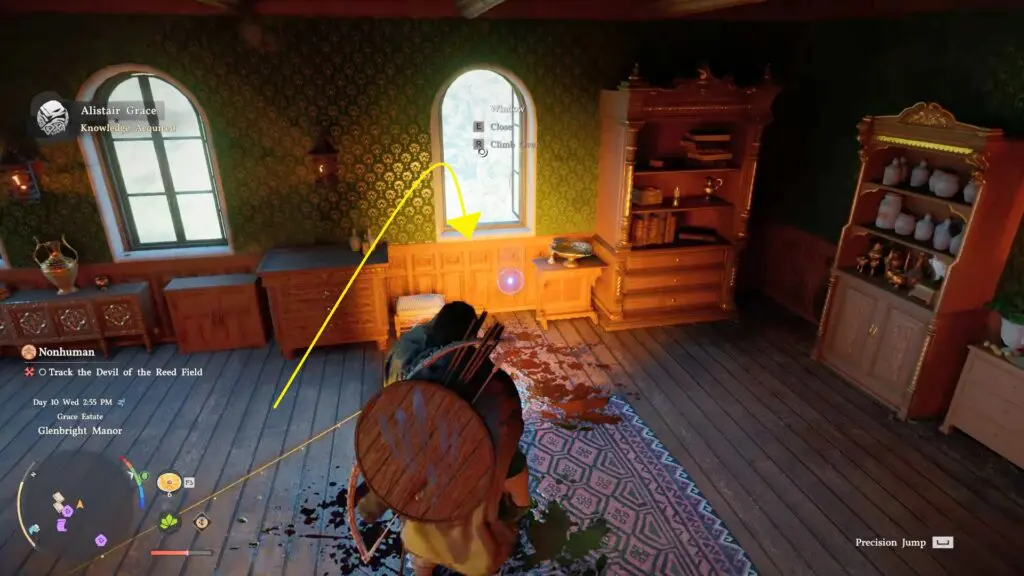 As the game continues, you will finish searching the upper floor of the manor. Here, you will find a survivor NPC servant. Approach and speak with him. He will tell you that your targets escaped through a window, giving you the next clue.