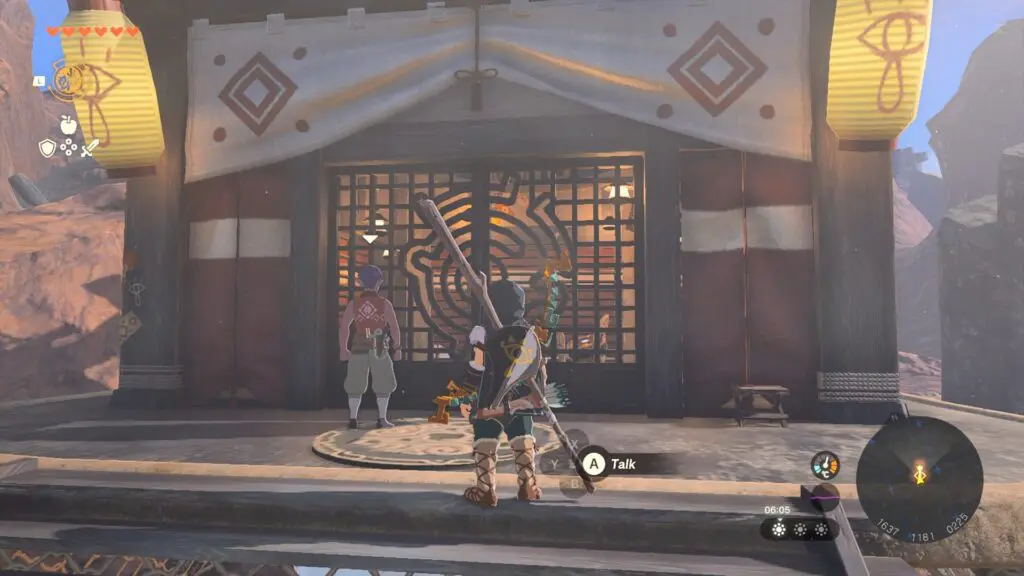 The Eldin Canyon Skyview Tower is conveniently situated northeast of Central Hyrule, very close to the location where you end up after the tutorial. Upon arriving at the location, Sawson will tell you that you need to climb the tower and activate it using the terminal inside. He will inform you that the lid of the tower has dropped off due to the impact of ancient ruins falling from the sky.