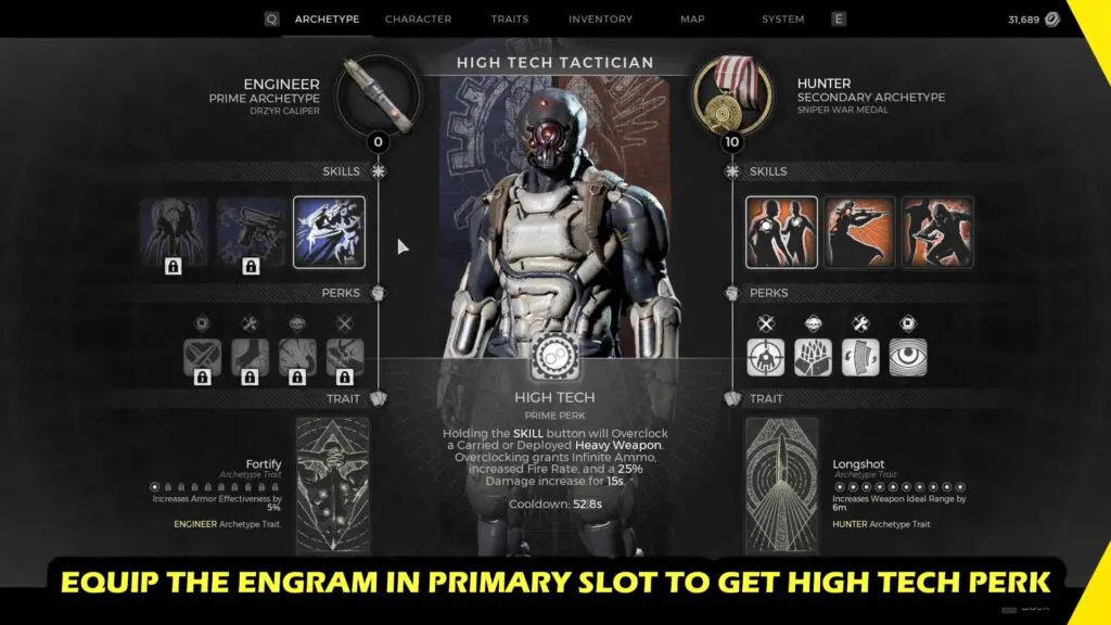Equip the Engram in the primary slot to get the High Tech perk.
