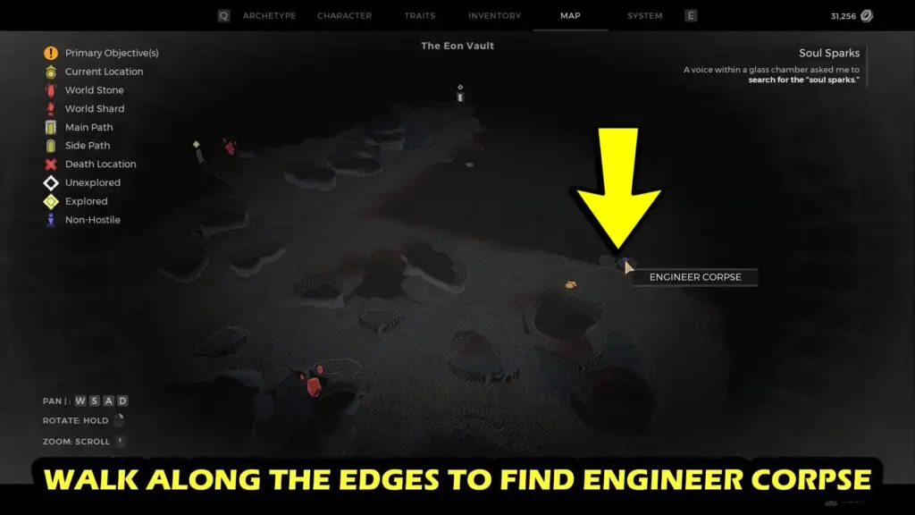 In Eon Vault, walk along the edge to find Engineer Corpse. Below is the location marked on the map.