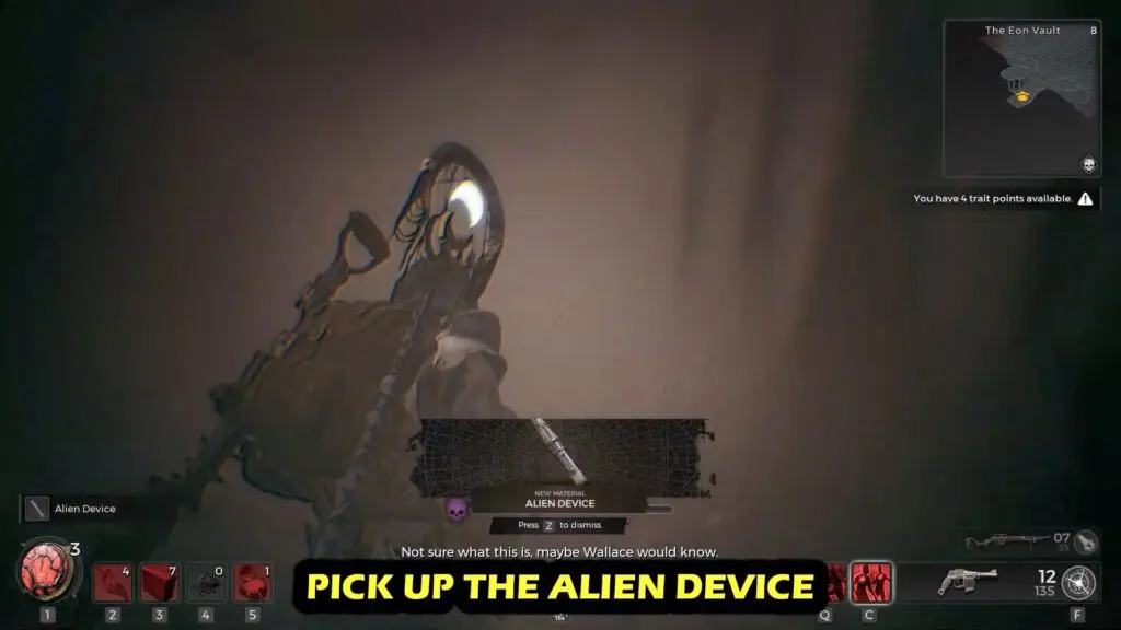 Drop down to the lower platform near engineer corpse to find an Alien Device.